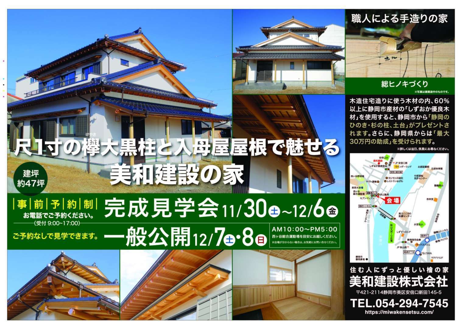 この度、美和建設が手掛けた「木の家」の完成見学会を開催いたします。