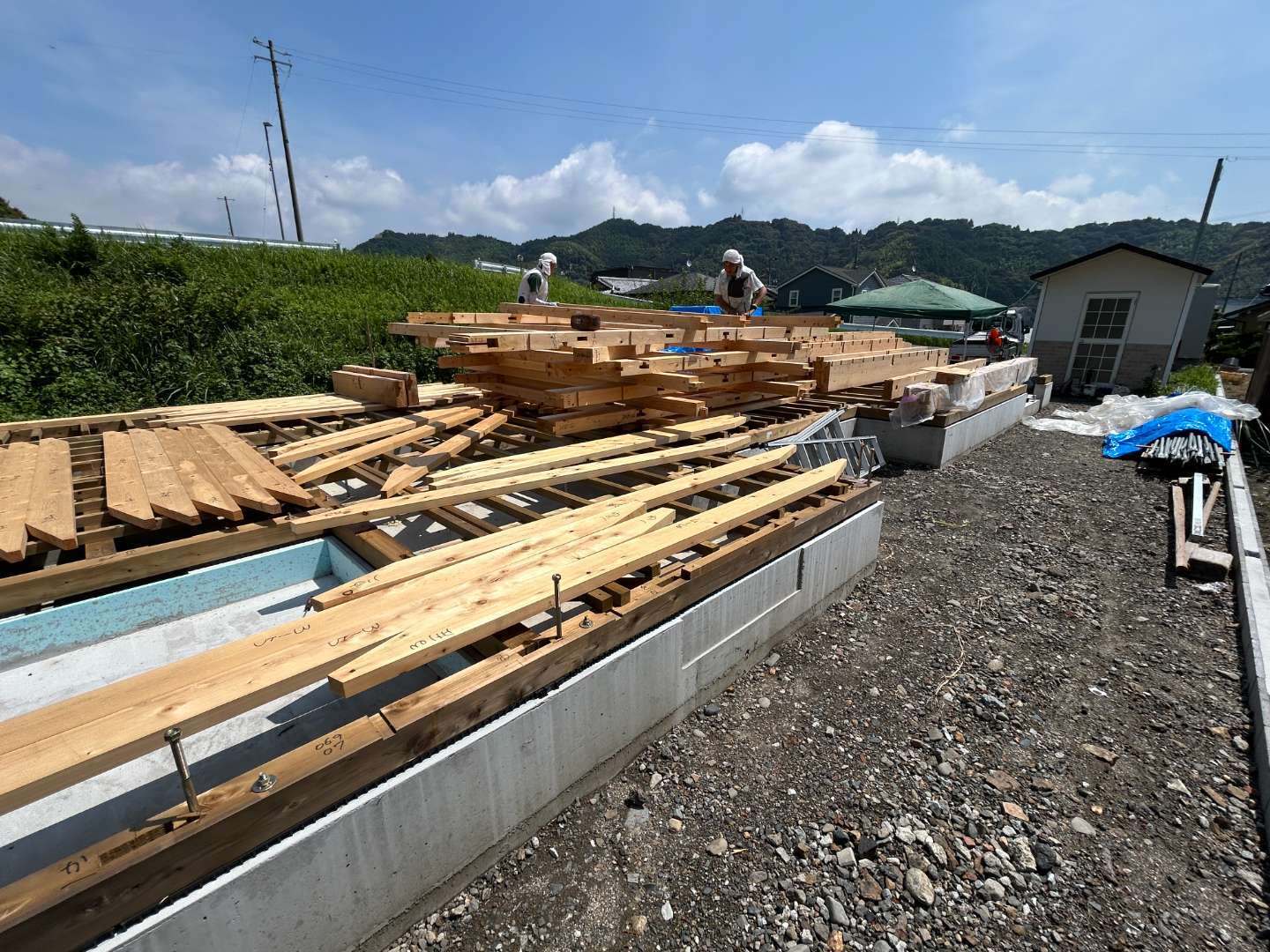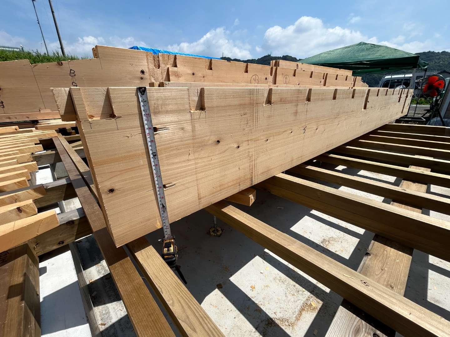 上棟当日に少しでも作業が進むよう棟梁により、組み立てられるものを組み立てています。